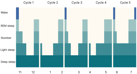 Sleep is not homogeneous through the night but made up of stages. There are four stages of sleep, categorized according to the depth of sleep and what happens in the body during each stage.