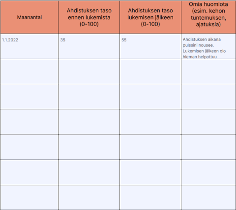 Ahdistuksen taso ennen lukemista (0–100): 35