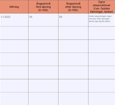 B. För också bok över exponeringsträningen med hjälp av dagboken nedan