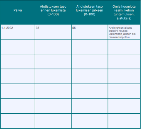 Ahdistuksen taso lukemisen jälkeen (0–100): 55