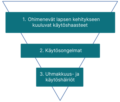 - Käytösongelmissa lapsen haastava käytös aiheuttaa haittaa lapselle tai lähipiirille. Käytösongelmat ovat usein ohimeneviä ja ratkaistavissa.