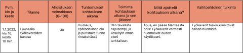 Tee merkintä aina, kun olet kokenut paniikkikohtauksen tai selkeää ahdistusta. Paniikkipäiväkirja kannattaa täyttää mahdollisimman pian kunkin kohtauksen jälkeen.