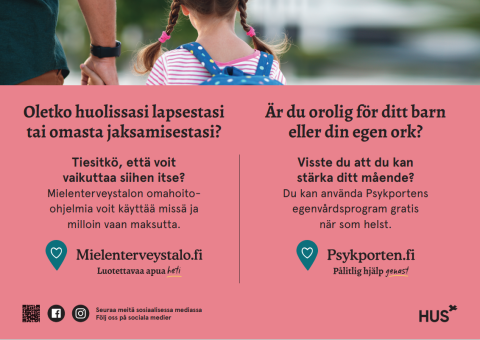 Näissä materiaaleissa on HUS-logo. Voitte halutessanne vaihtaa sen oman alueenne logoon.