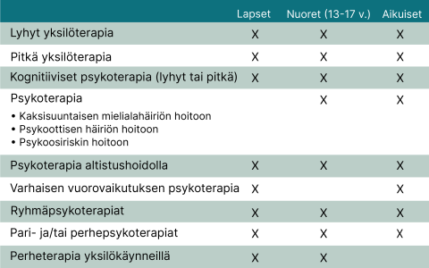 Jos olet potilas, saat tarvittaessa lisätietoja psykoterapiaan ohjanneelta työntekijältäsi.