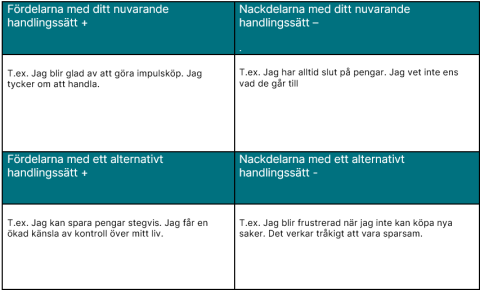 Om du är osäker på om du vill ha en förändring kan du reflektera över din situation med hjälp av följande övning.