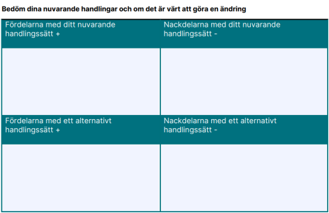 Bedöm ditt nuvarande agerande och om det lönar sig att göra en förändring