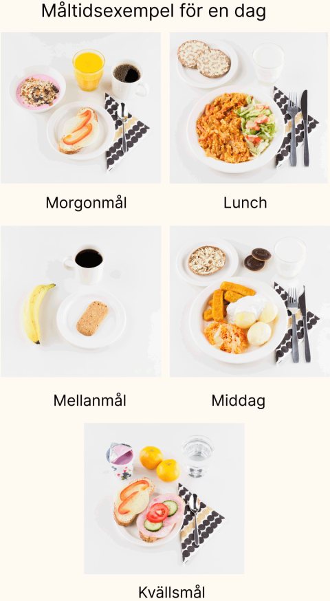 - Ät regelbundet var 3–4:e timme, dvs. cirka 5–6 gånger om dagen.