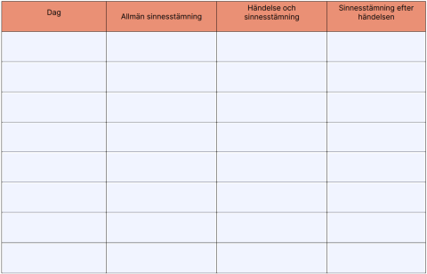 Nedan ser du frågorna i humördagboken och ett exempel på hur dagboken kan se ut.