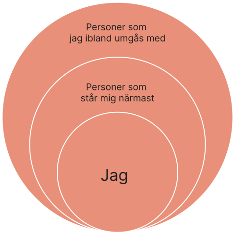 Placera de som du litar på och som står dig närmast i den näst innersta cirkeln. Rita sedan de som du umgås med då och då i den yttersta cirkeln.